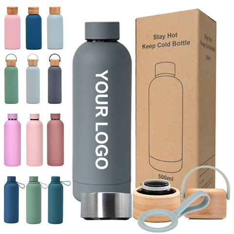 カスタムロゴ500mlドリンクボトルステンレス鋼二重壁真空フラスコサーマルラバーペイントマットスポーツウォーターボトル