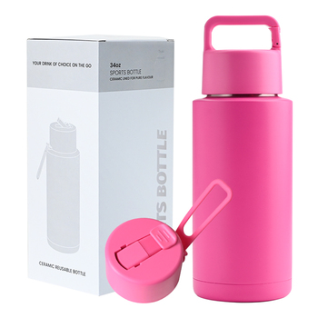 カスタムロゴ34オンス二重壁断熱真空ステンレス鋼セラミックコーティング裏地再利用可能なウォーターボトルボトル